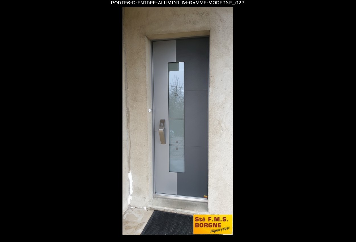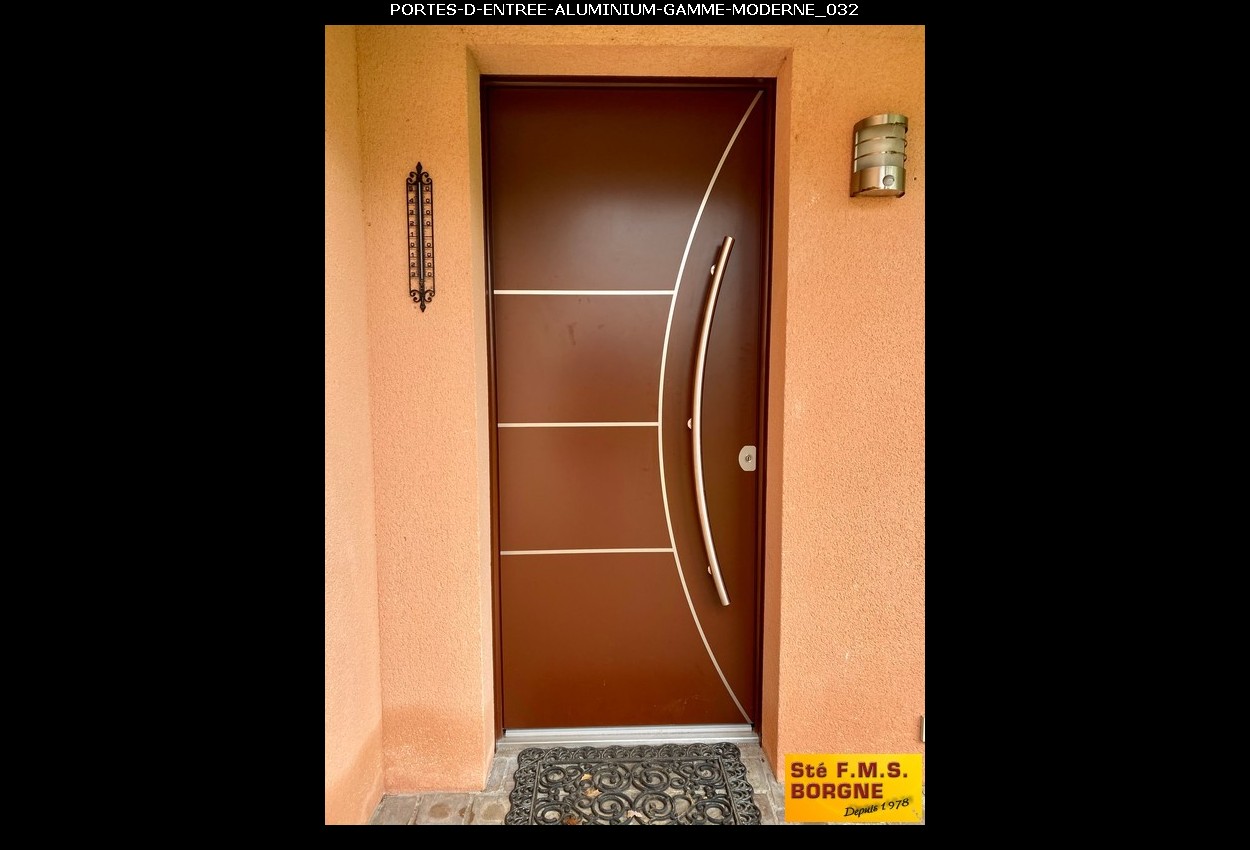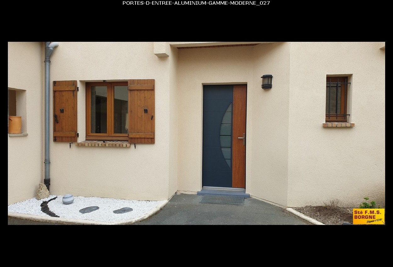 La porte d'entrée en aluminium offre une combinaison parfaite de sécurité, modernité et élégance, idéale pour sublimer votre façade. Avec sa structure robuste et légère, elle résiste aux intempéries sans se déformer, tout en nécessitant peu d'entretien. Disponible dans une variété de finitions et de couleurs, cette porte apporte une touche contemporaine à votre maison tout en assurant une isolation optimale.