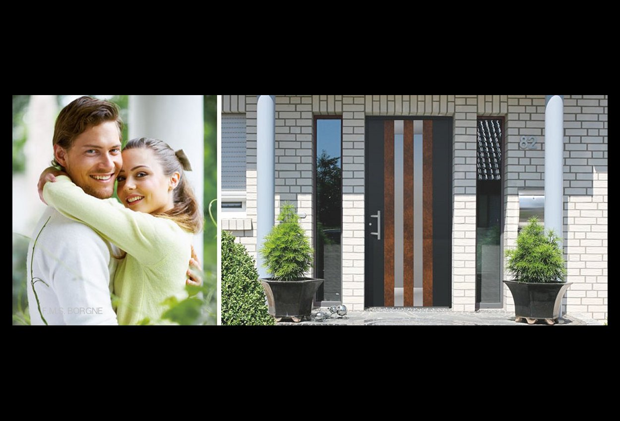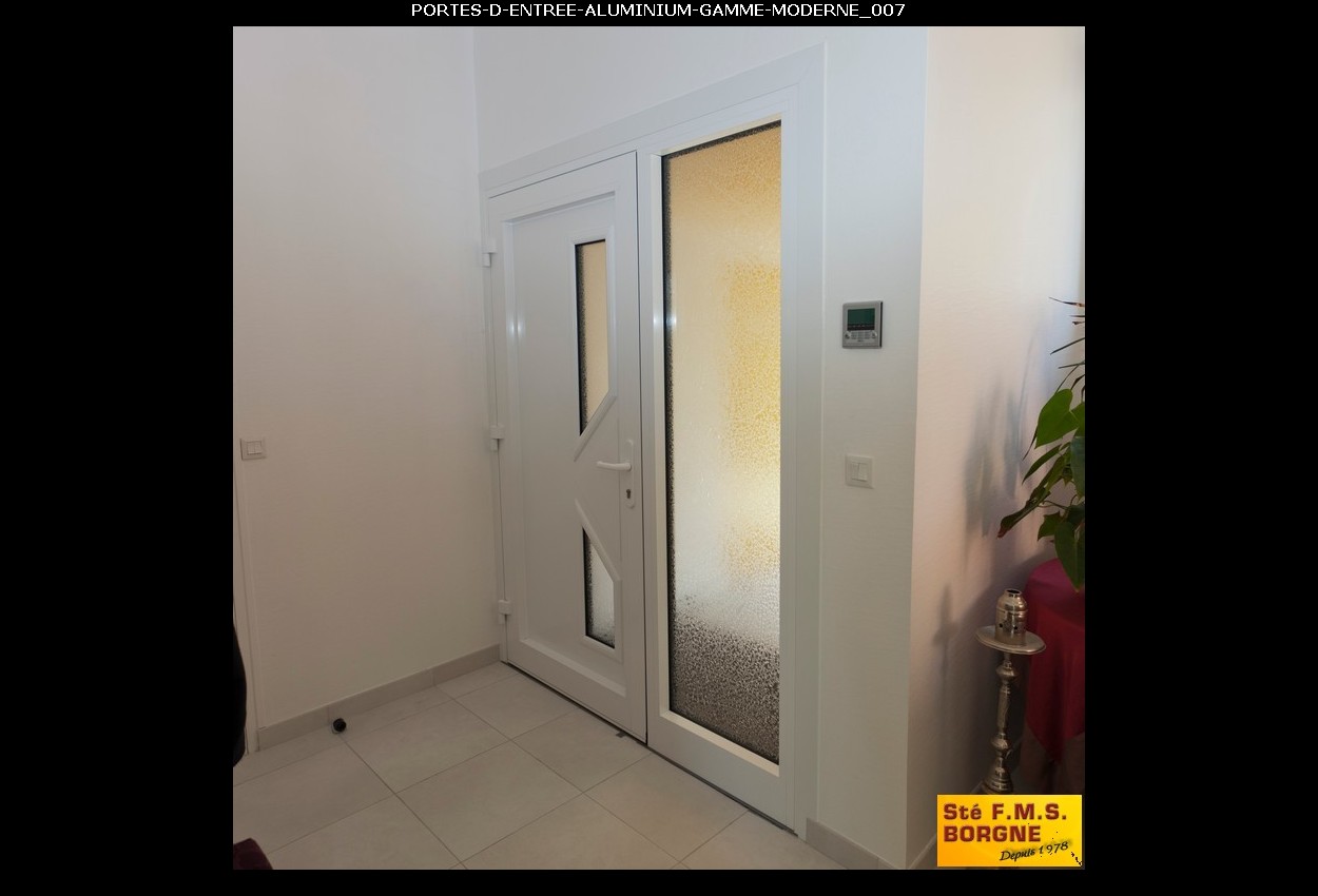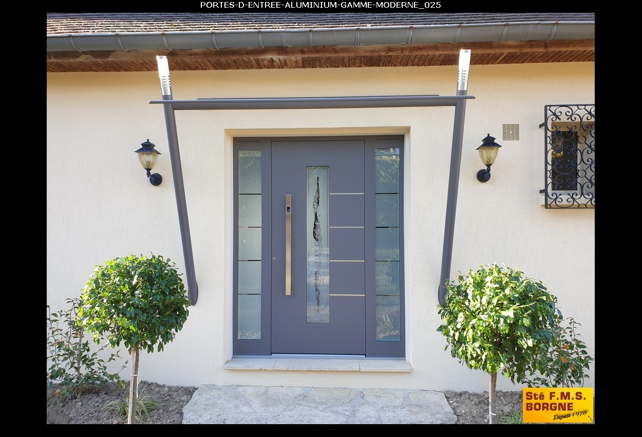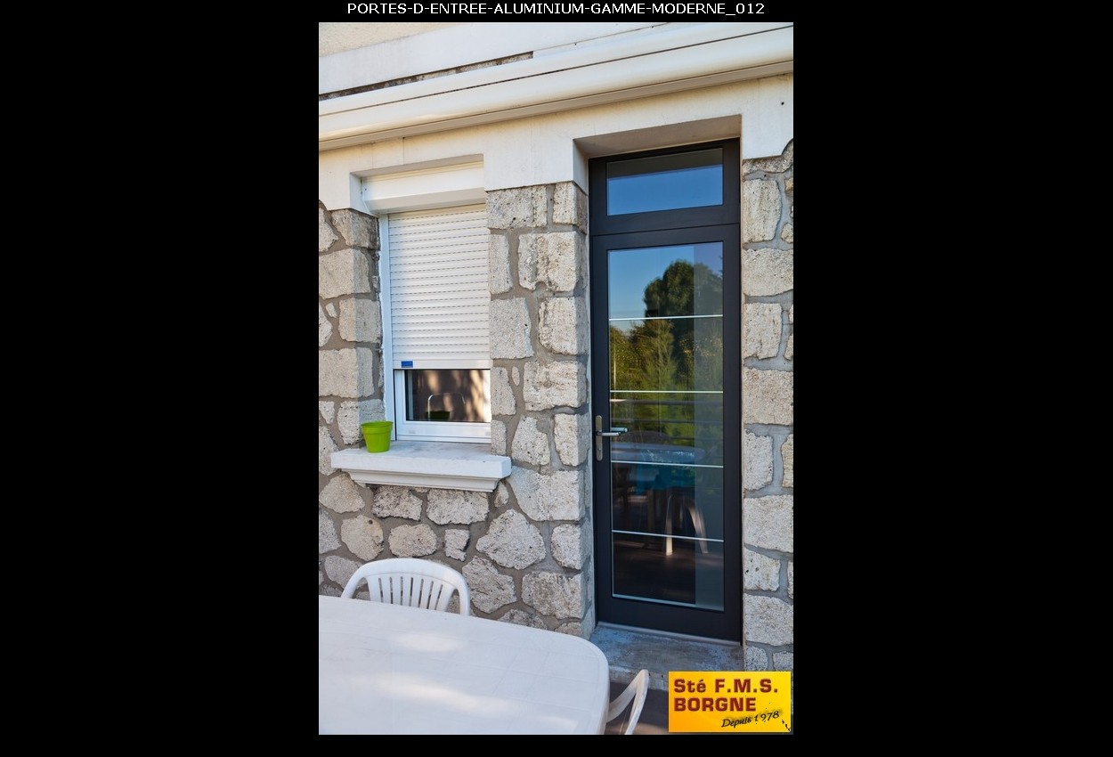 La porte d'entrée en aluminium offre une combinaison parfaite de sécurité, modernité et élégance, idéale pour sublimer votre façade. Avec sa structure robuste et légère, elle résiste aux intempéries sans se déformer, tout en nécessitant peu d'entretien. Disponible dans une variété de finitions et de couleurs, cette porte apporte une touche contemporaine à votre maison tout en assurant une isolation optimale.